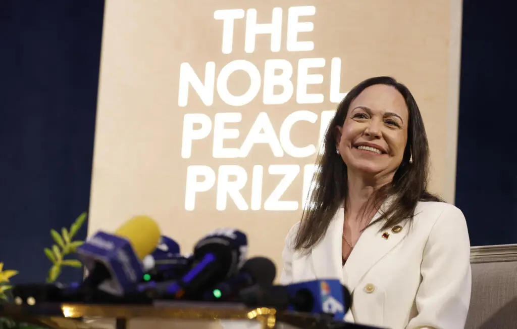 A líder da oposição venezuelana María Corina Machado protagonizou um gesto simbólico ao entregar ao ex-presidente dos Estados Unidos Donald Trump a sua medalha do Prémio Nobel da Paz de 2025 durante uma reunião na Casa Branca nesta quinta-feira. Machado afirmou que fez a entrega “em reconhecimento pelo seu compromisso único com a nossa liberdade”, sublinhando o papel que atribui ao ex-líder norte-americano nos recentes acontecimentos políticos na Venezuela.
