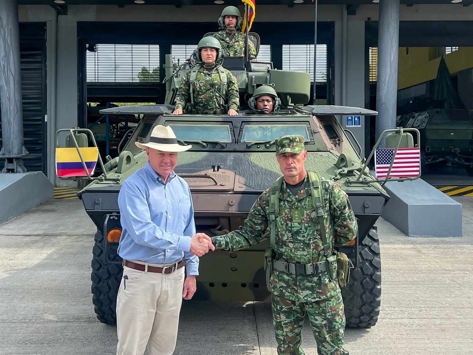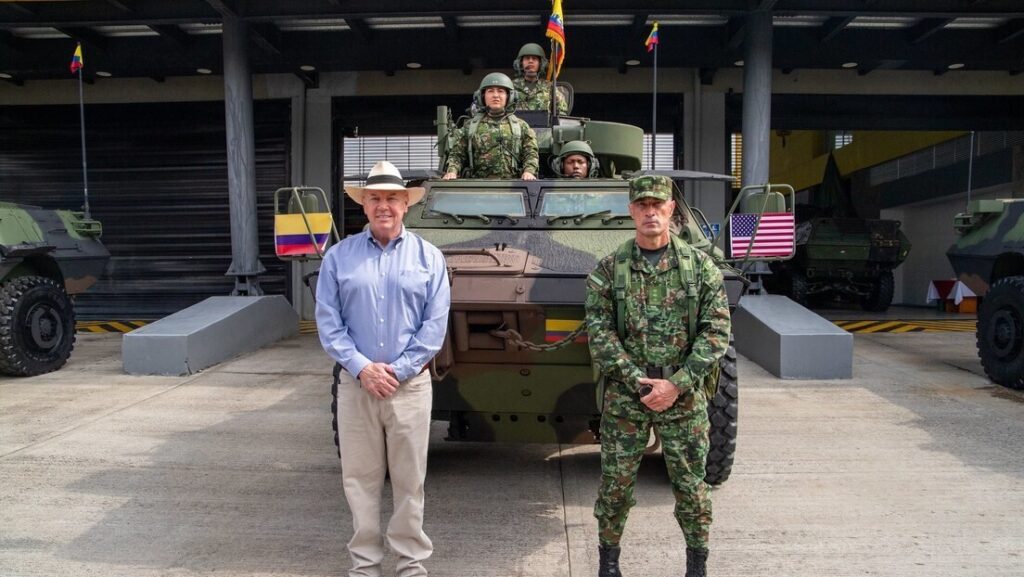 Segundo a representação diplomática, os blindados foram entregues pelo encarregado de Negócios dos EUA, John McNamara, em cerimônia acompanhada pelo comandante do Exército colombiano, major-general Royer Gómez Herrera. Os veículos, produzidos em território norte-americano, serão incorporados às operações das Forças Armadas da Colômbia.